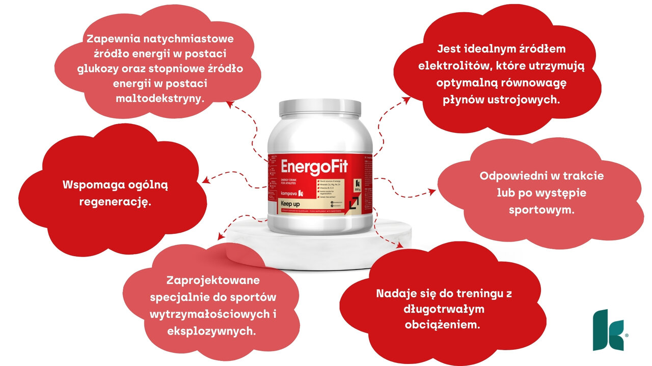 Napoje izotoniczne to praktyczne i skuteczne rozwiązanie dla sportowców chcących zoptymalizować swoją wydajność i nawodnienie podczas wysiłku fizycznego. EnergoFit to wysoce skuteczny napój energetyczny. Zapewnia szybkie źródło energii w postaci glukozy węglowodanowej i powolne źródło energii w postaci maltodekstryny. Dzięki zawartości aminokwasu L-glutaminy przyczynia się do regeneracji organizmu. Ekstrakt z zielonej herbaty działa antyoksydacyjnie i chroni organizm przed wolnymi rodnikami.