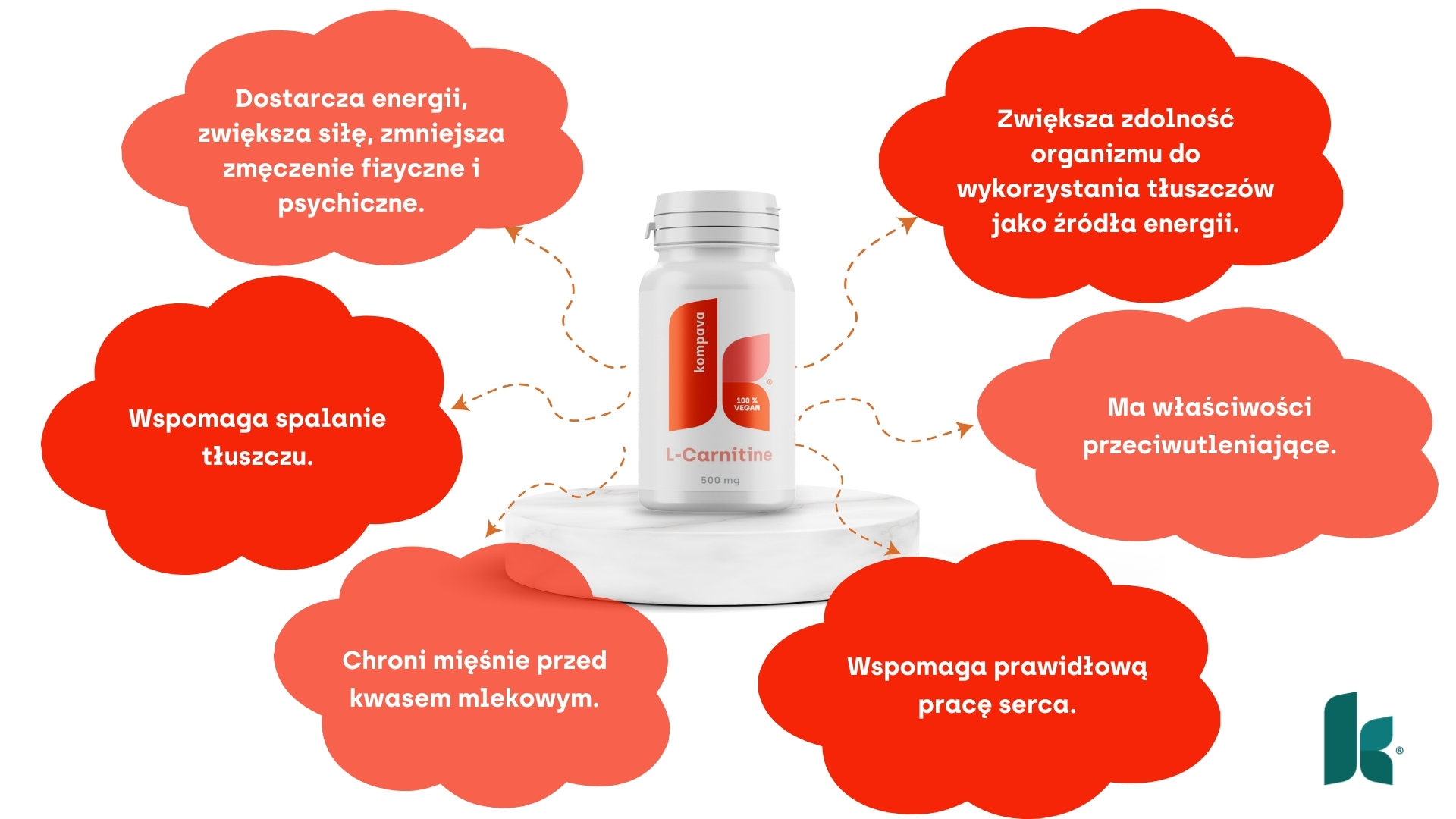 L-karnityna jest naturalnym składnikiem odżywczym organizmu, który odgrywa zasadniczą rolę w metabolizmie energetycznym organizmu, a co za tym idzie, także metabolizmie tłuszczów. Transportuje kwasy tłuszczowe do mitochondriów, źródeł energii w komórkach, które przekształcają kwasy tłuszczowe w energię. Przyczynia się do wykorzystania tłuszczów jako "paliwa dla mięśni" oraz ogranicza wytwarzanie kwasu mlekowego. Bez L-karnityny kwasy tłuszczowe nie mogą dotrzeć do mitochondriów, a organizm nie może spalać tłuszczu. Karnityna jest substancją, którą organizm może częściowo wytworzyć samodzielnie, a częściowo musimy ją dostarczyć z pożywieniem. Niedobory karnityny objawiają się najczęściej osłabieniem lub zanikiem mięśni szkieletowych oraz niewydolnością mięśnia sercowego.